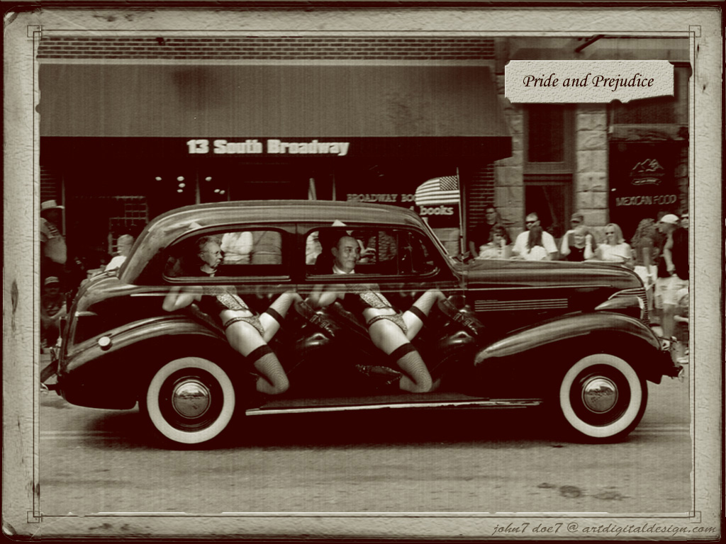 "I created this series of work more than ten years ago. I posted them on the Internet under the pseudonym John7 Doe7. I did not want to give my name to the pictures because these works are strikingly different from what I usually make. In addition, they are relatively light conceptual sketches then profound observations. But over the years, it seemed that despite the apparent difference between these collages and my artworks, they are still a part of my visual culture; they are the part that I could not utilize in traditional works because of their apparent sarcastic-humorous nature. After some considerations, I decided to post them on my website anyway." - George Grie, 2012
