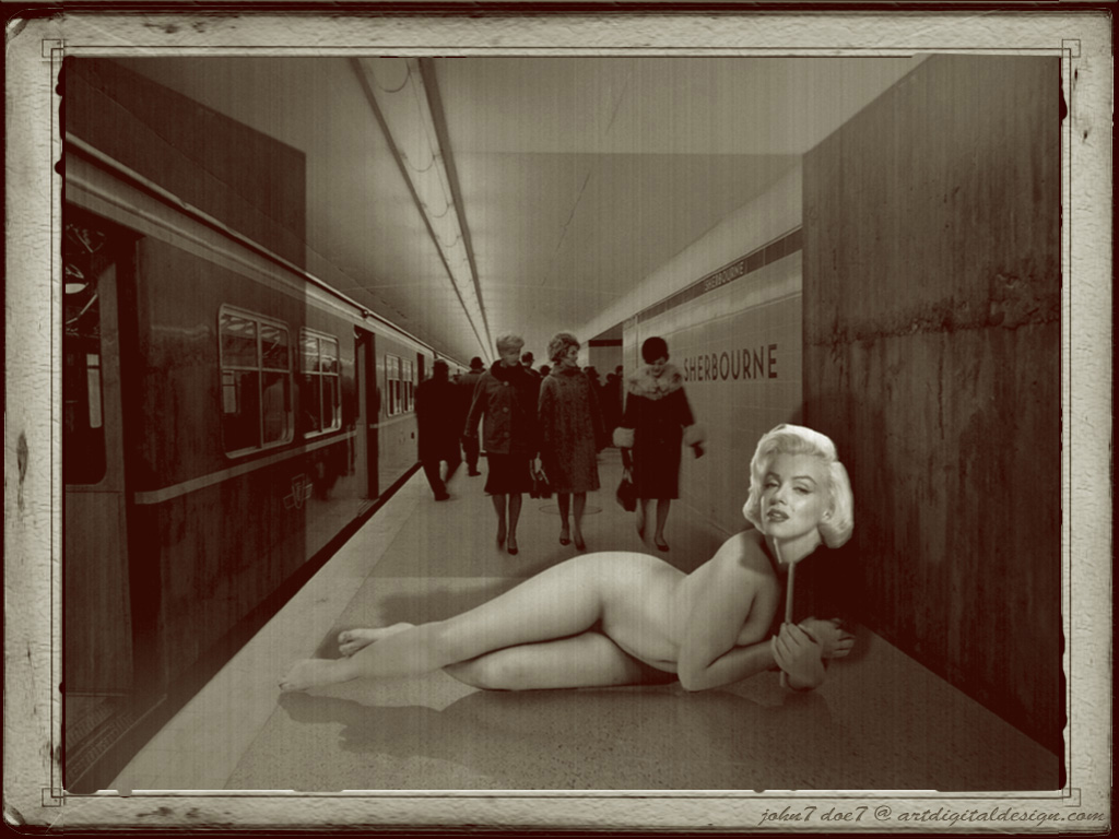 Here are surrealistic photo-collages on literary themes. "Crime and Punishment" by Fyodor Dostoevski, Russian novelist, short story writer, essayist, journalist. "Pride and Prejudice" by Jane Austen, novel "Rendezvous in Samaria" by John O'Hara, Stephen King's novel "Pets Cemetery", All's Well That Ends Well" by William Shakespeare, An oxymoronic combination of objects in these compositions gives rise to a chain of reflections and associations. In all of George Grie's works there is a share of black humor, skepticism, and ridicule over certain rules and ideals, which is quite inherent in surrealism in general. Another nostalgic work-allegory "Gone with the wind" ... Photo of the Sherborne subway station in Toronto in the 1950s and Merlin Monroe. The artist used this metro station for several years when he lived and worked in Toronto." Here is the personalization of the popular expression "Cute as a button". Since when is the button pretty?