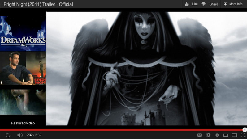 Fright Night, DreamWorks movie, USA2010. The "Angel of Infinity " work has been chosen to be featured on a new DreamWorks feature called Fright Night. DreamWorks Pictures American film studio which develops, produces, and distributes films, video games and television programming is bringing their 3D reimagining of Fright Night (2011) DreamWorks owned by media moguls Steven Spielberg, J.Katzenberg and D.Geffen is a new pseudo Hollywood studio. |