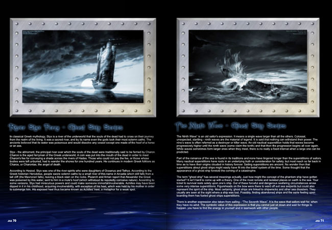 ArtWorks, School Visual Textbook, Canada2011 February, Emond Montgomery Publications features The Flying Dutchman artwork in a grade 9-10 Visual Textbook. Art Works is the first Canadian visual arts textbook in over 20 years. It focuses on the issues, ideas, and themes that inform the art world today. Special emphasis is given to artwork by Canadian and contemporary artists. This collection of classroom-ready materials includes: assessment and evaluation tools and strategies, answers to questions, and a digital image gallery. Subjects: Art, Film, Music, Drama. Illustration - The Flying Dutchman Phantom |