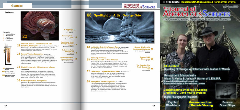 The Journal of Anomalous Sciences2009 August. The number of images have featured in, Spotlight on the Artist – George Grie, (Mikkola Jari). World Nexus Publications - The Journal of Anomalous Sciences, a new, state of the art bi-monthly electronic magazine presents the anomalous sciences. http://dznucleus.com/spotlight-on-the-artist-george-grie/ page1 page2 page3 page4 page5 page6 |